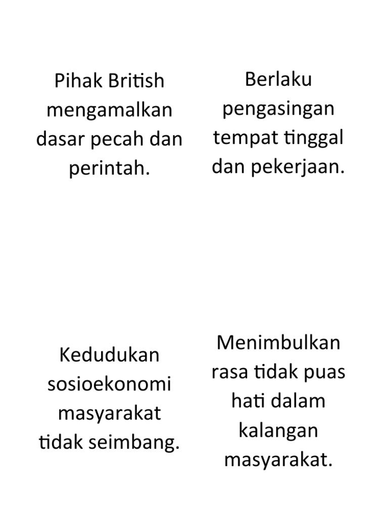 Orang british adalah pakar dalam pecah dan perintah. Diperkenalkan oleh inggeris iaitu dasar 'pecah' dan 'perintah' yang bermaksud pengasingan masyarakat yang terdapat di tanah melayu. Pdf drive investigated dozens of problems and listed the biggest global issues facing the world today. 1 downloads 103 views 424kb size. Ini sekali gus menyokong dasar dasar islam liberal yang mana meletakkan islam dan bangsa melayu.