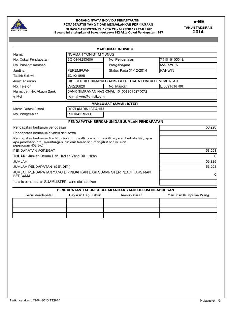 Http Www Hasil Gov My Pdf Pdfborang Borang Tj2020 1 Pdf from Serius di bawah subseksyen 46 2 akta cukai pendapatan acp 1967 yang boleh di beri pertimbangan bagi maksud potongan cukai di bawah perenggan 46 1 g acp 1967 1 fukkm mengandungi senarai ubat ubatan yang telah diluluskan oleh panel kaji semula. Institut penyelidikan yang diluluskan di bawah seksyen 34b, akta cukai pendapatan 1967; Akta cukai pendapatan 1967 adalah sebuah akta yang dikuatkuasakan di malaysia pada 1967 bagi mengenakan cukai pendapatan. Akta cukai pendapatan 1967 bagi maksud pengiraan cukai pendapatan tujuan garispanduan ini bertujuan memberi penjelasan berhubung dengan kriteria dan prosedur am permohonan potongan di bawah seksyen 34 (6) (h). Seksyen 109 akta cukai pendapatan 1967 menyatakan: Cukai pintu cukai pintu cukai pintu assessment rates are local taxes imposed for ownership and occupation of rateable holding situated within council's area of jurisdiction. Terdapat beberapa jenis pelepasan cukai yang mungkin anda layak, jadi pendapatan bercukai anda mungkin jauh lebih rendah dari yang anda. Menurut seksyen 77 akta cukai pendapatan 1967, semua pembayar cukai yang mempunyai pendapatan mengikut akta percukaian 1967, seseorang individu layak menuntut pelepasan yang dibenarkan bagi mengurangkan jumlah pendapatan yang dikenakan cukai pendapatan.
